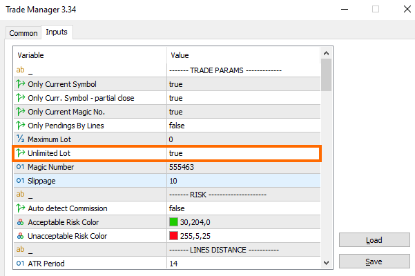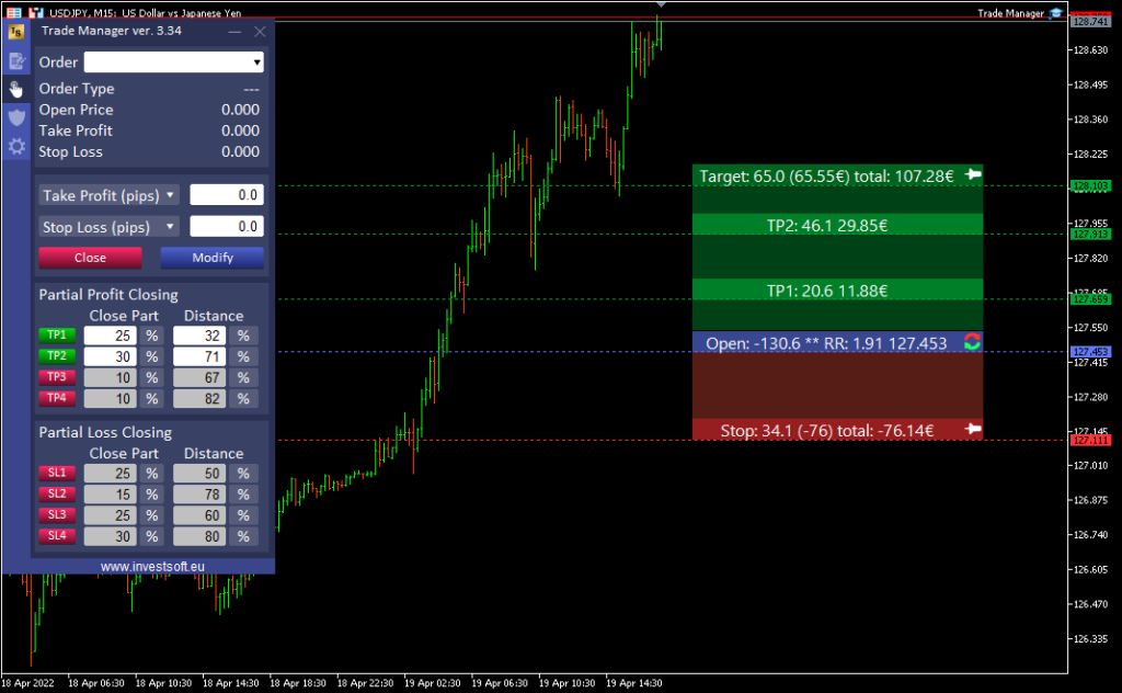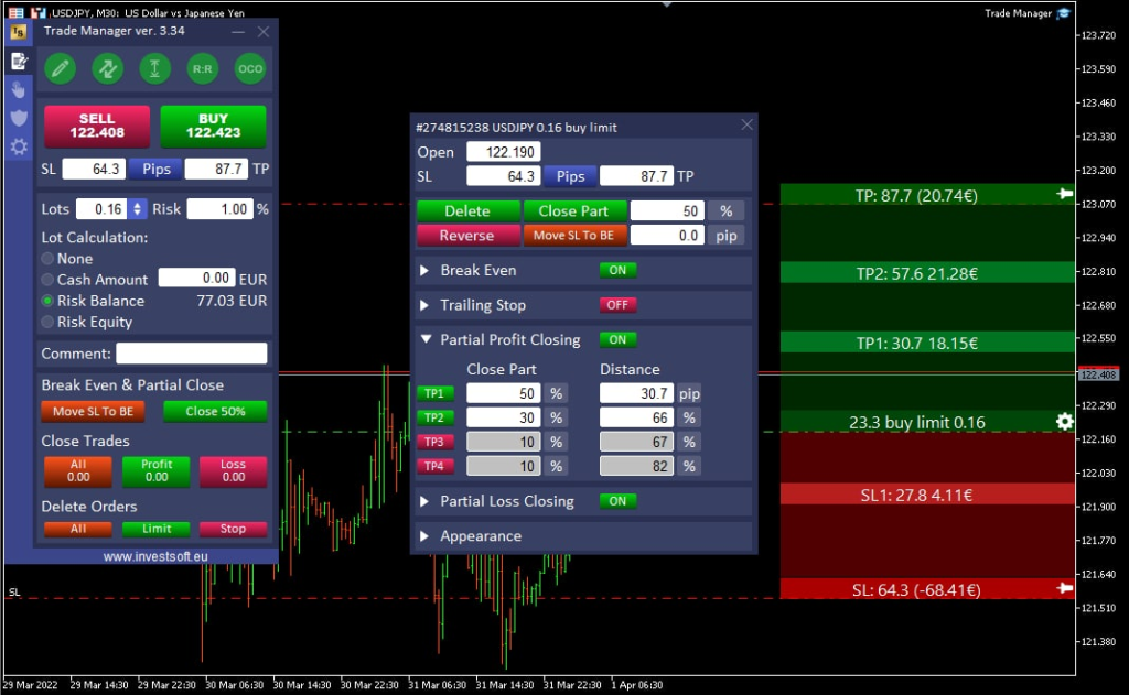 Additionally, in the Trade Manager parameters, you can set the appearance and operation of the partial close levels: