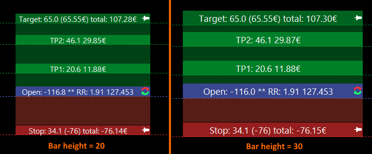 The texts displayed on the bars at partials levels can be set in the program configuration. As before, you can configure separate texts for planned, pending and market orders.