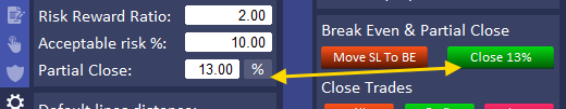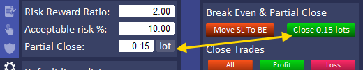 For a Partial Profit Closing there is a 3rd option to set distance to close part of trade and this is Risk Reward (“rr”).