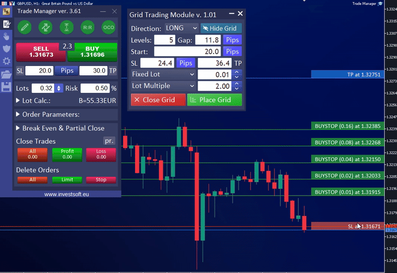 🔹 You can get the Grid Trading Module for MT4 or MT5 from the official InvestSoft store.