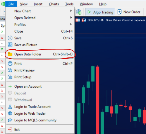 - In the top menu choose File and then Open Data Folder. A new window will open.