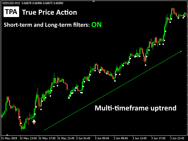 True Price Action Indicator NZDUSD, M15 example with both filters