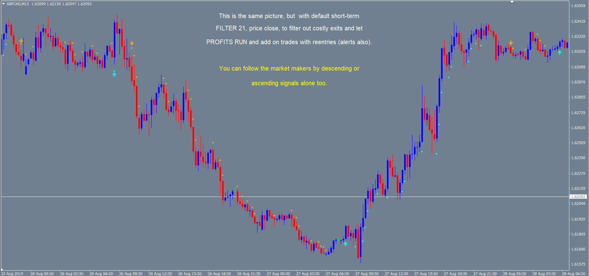 Therefore signals are only generated in the second, a candle closes, to confirm the market makers price action.