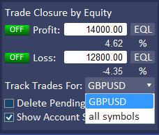 When your equity reaches either of these levels, Trade Manager will automatically close all trades.